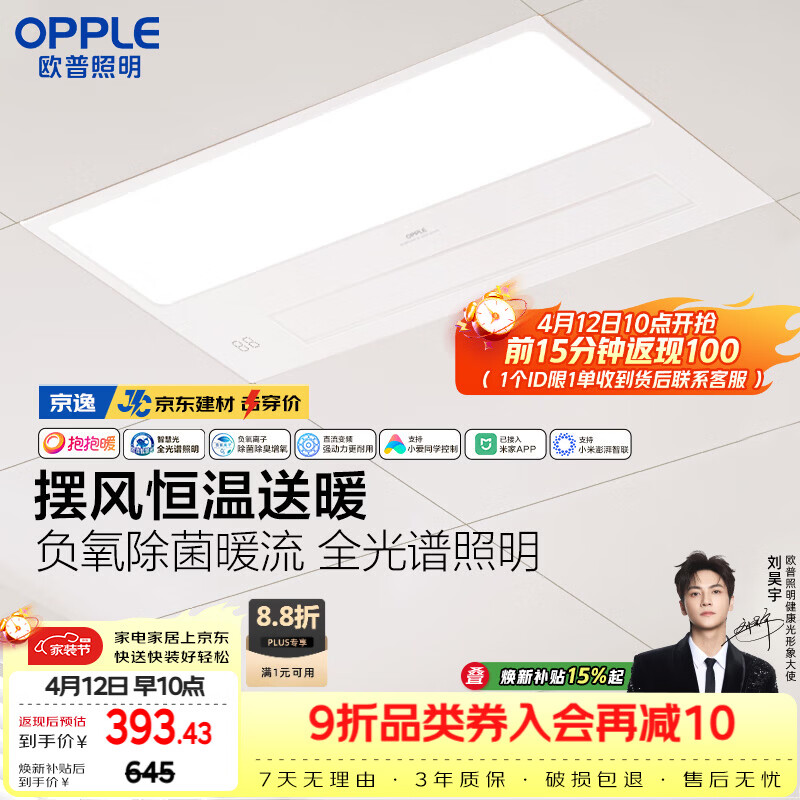 自营欧普照明(OPPLE)AI人感智能浴霸京系列抱抱暖变频恒温除菌 京智 【一价全包】