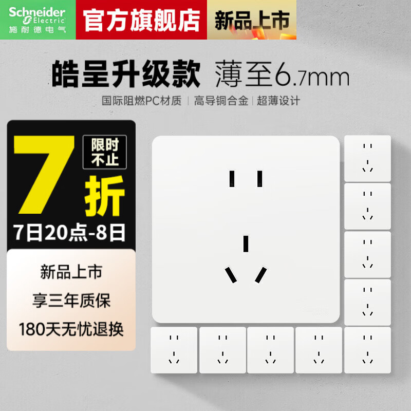 旗舰店施耐德开关插座面板86型墙面皓呈升级款无框大面板单开一开皓隽奶油白色 正五孔10只装
