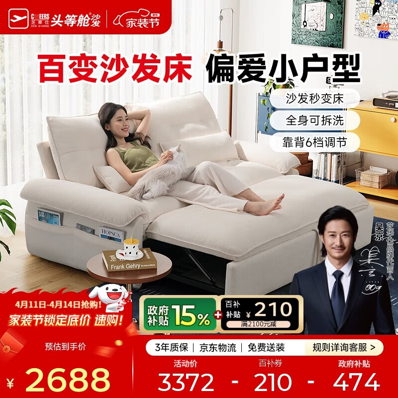 自营芝华仕(CHEERS)可拆洗沙发床折叠一体两用小户型客厅沙发2026新款6325白1.96m