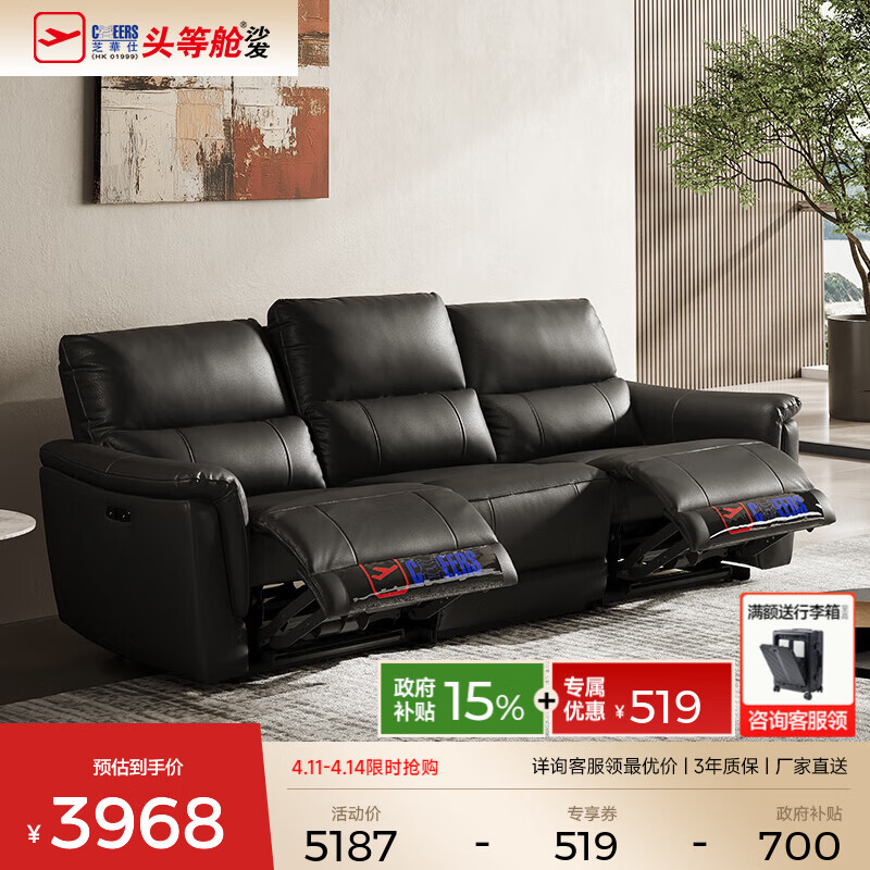 旗舰店芝华仕头等舱贵族智能椅现代简约真皮沙发电动功能零靠墙30653明星款 【进口头层牛皮|智能躺位|0靠墙】2.28M-三座双电-黑 优先发货(详询客服)(功能架10年质保)