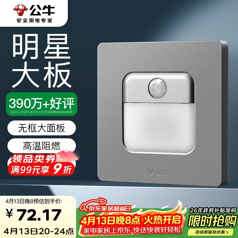 自营公牛(BULL)地脚灯 G12系列 人体感应地脚灯86型暗装面板G12D123 星空灰