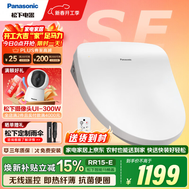 自营松下(Panasonic)智能马桶盖电动加热冲洗无线遥控RR15E