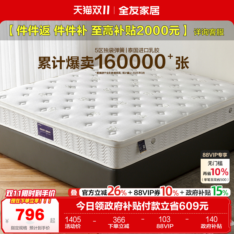 旗舰店政府补贴全友家居椰棕独立弹簧床垫硬垫子家用卧室席梦思20cm厚