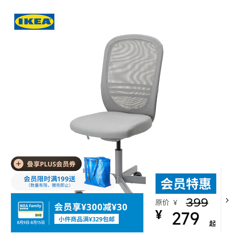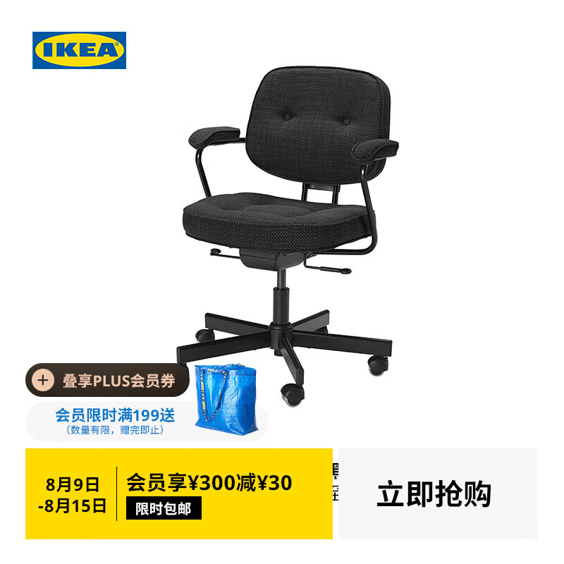 旗舰店宜家(IKEA)FLINTAN福通电脑椅书桌椅子升降转椅家用 灰色无扶手