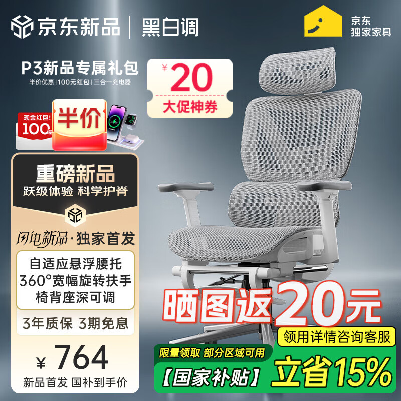 自营黑白调P3人体工学椅电脑椅办公人工力学座椅学习电竞椅子可躺国家补贴
