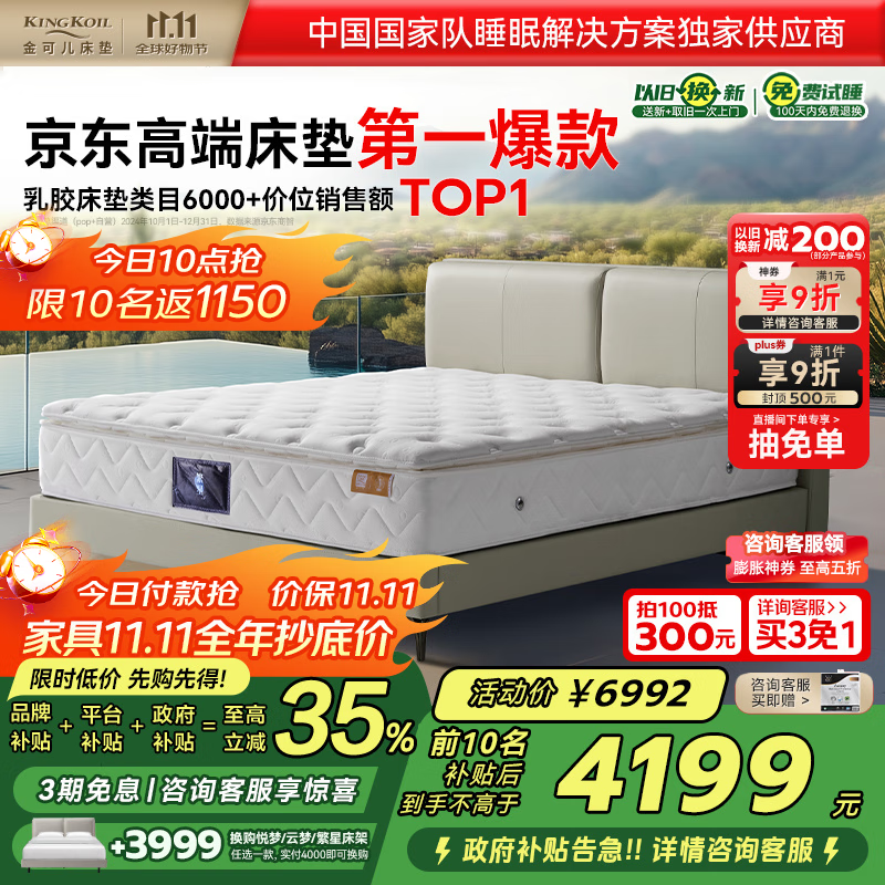 自营金可儿(Kingkoil)床垫威斯丁酒店款乳胶席梦思弹簧床垫繁星A床垫1.8*2米软硬适中