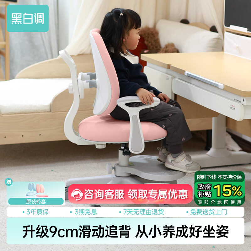 旗舰店黑白调G3儿童学习椅写字椅人体工学追背椅带脚踏可升降【滑动追背】 粉色 G3高配款【9cm滑动追背】