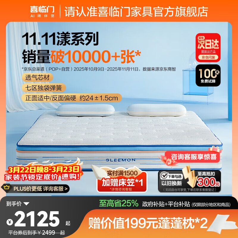 旗舰店喜临门漾pro舒爽透气软硬两用凝胶记忆棉3D透气芯材弹簧床垫 漾pro-厚24cm【指定尺寸闪送】 1.8*2米