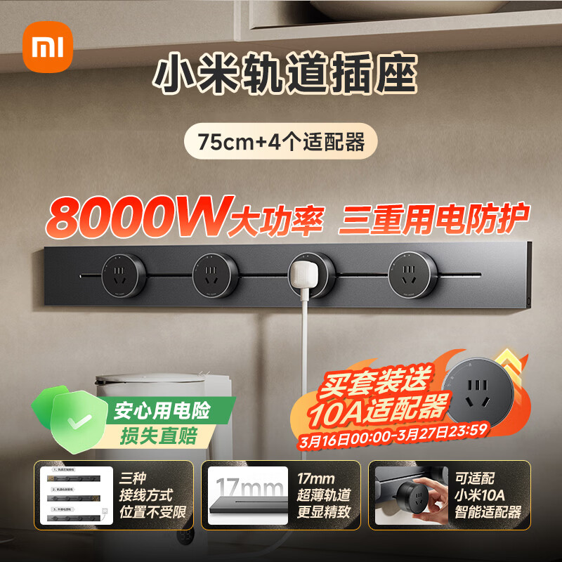 小米明装轨道插座轻薄款 可适配小米智能插座 免开槽开关插座面板 75厘米轨道+4个五孔适配器 深空灰