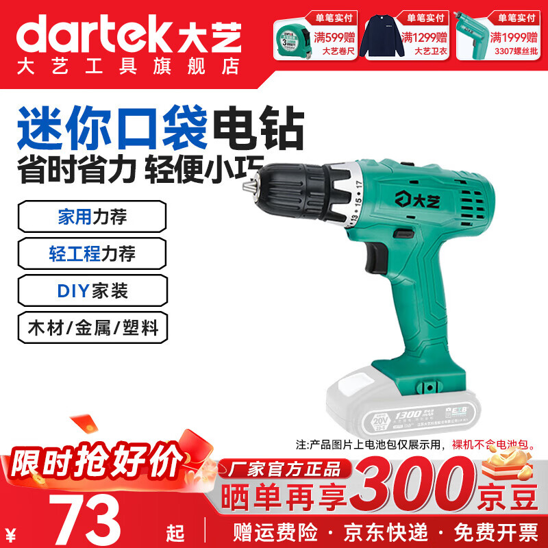 旗舰店大艺手电钻家用20V锂电电动手电钻充电电钻多功能电动螺丝刀原装正品 T28双速【裸机-无电池充电器】