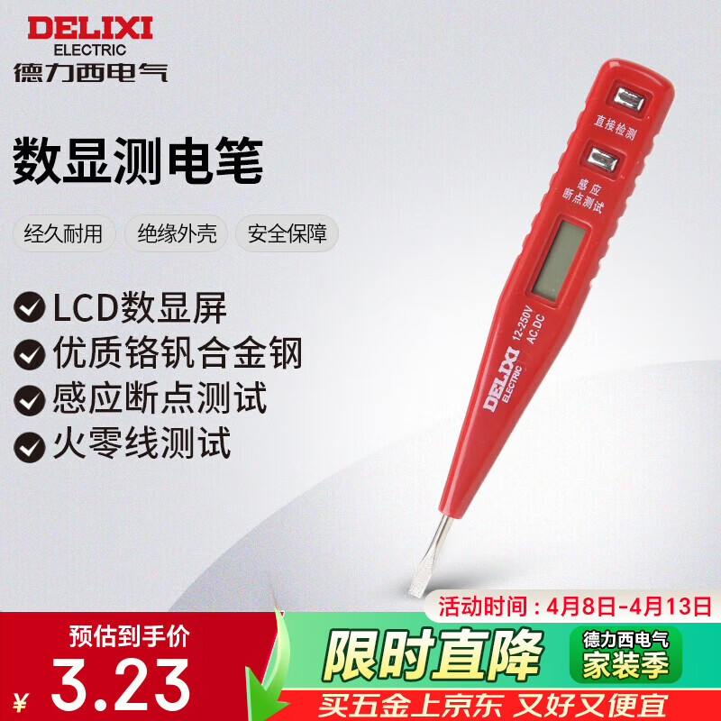 自营德力西电气数显测电笔多功能感应电工笔试电笔验电笔 12-250V