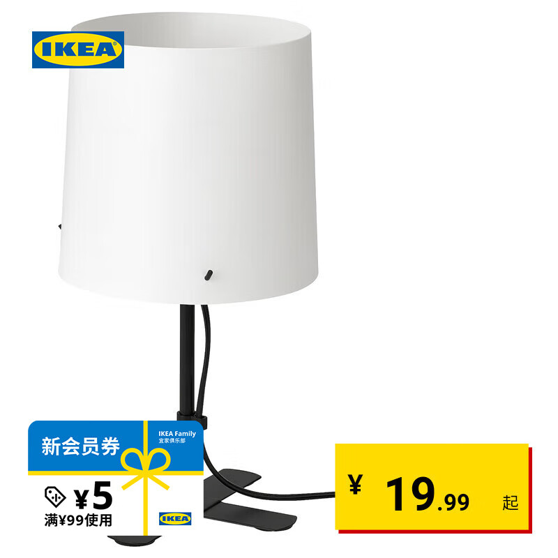 旗舰店宜家(IKEA)BARLAST巴勒思台灯黑色白色柔和温馨大方稳重现代简约 黑色/白色(灯泡须另购)