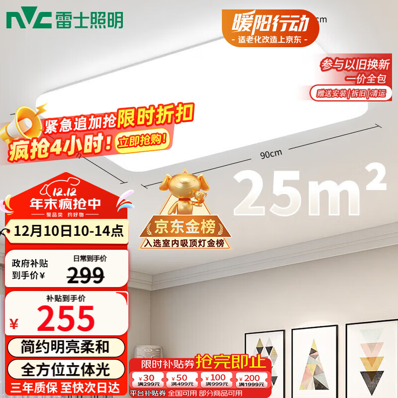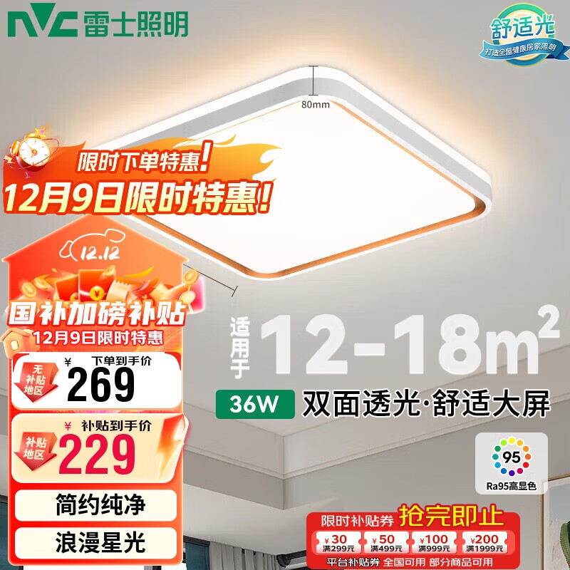 自营雷士照明(NVC)LED吸顶灯现代简约卧室书房餐厅政府补贴柠梦95高显指36w