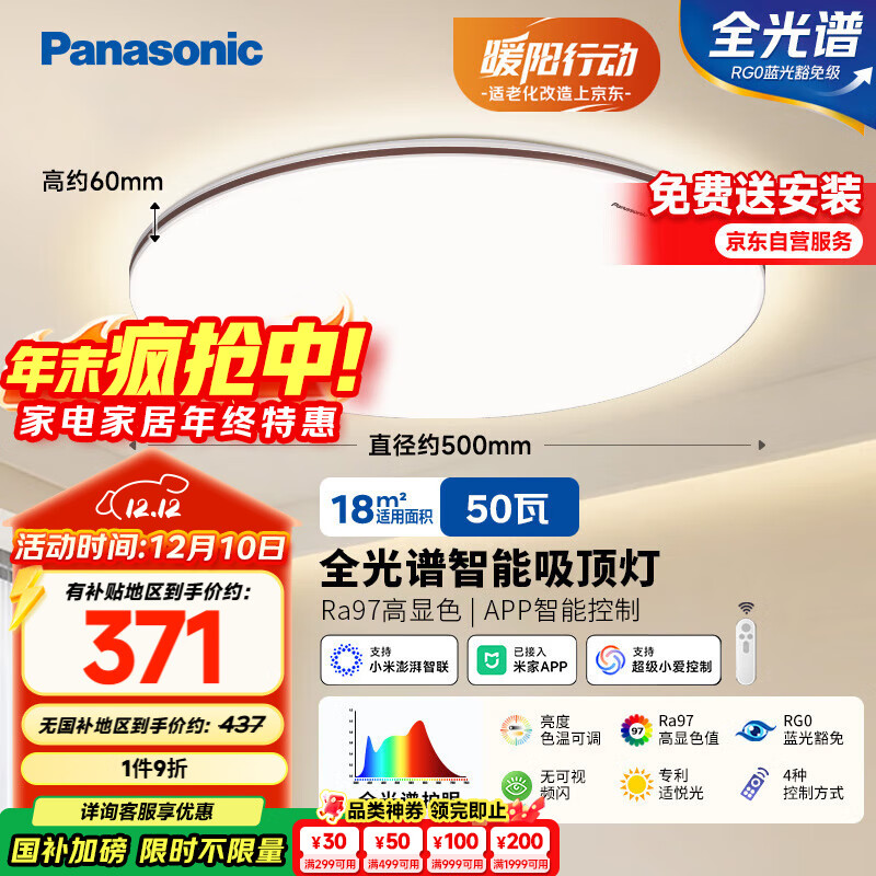 自营松下(Panasonic)吸顶灯卧室灯全光谱智能护眼灯50瓦HHXS5185【包安装】
