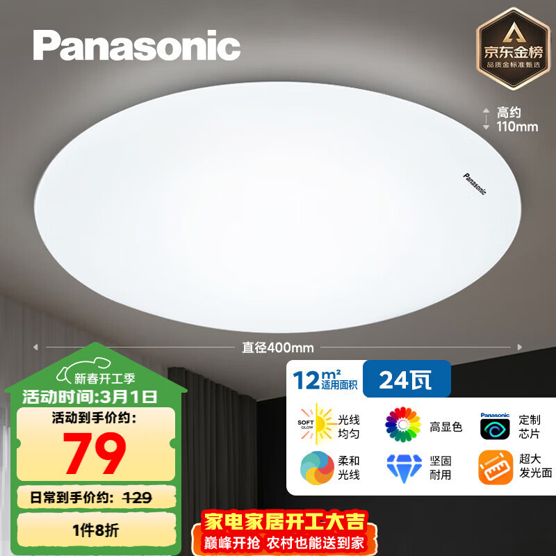 自营松下(Panasonic)吸顶灯LED客厅卧室灯具圆形24瓦素白HHXC2221L高显色