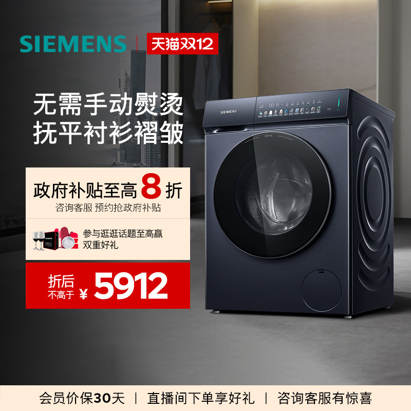 旗舰店【小幸熨】西门子10公斤滚筒全自动除皱超氧变频平嵌iQ500洗衣机