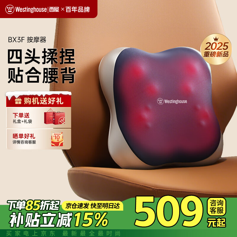 旗舰店西屋(Westinghouse)美国西屋BX3-F腰部按摩器腰背按摩仪肩颈椎按摩器车载按摩靠垫四叶草圣诞节生日礼物送男女士长辈 BX3-F深邃蓝【充插两用+4000毫安】