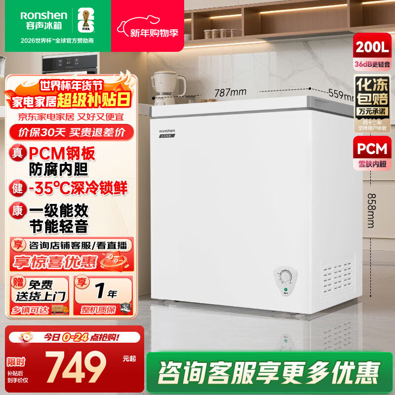旗舰店容声200升减霜冰柜家商两用冷藏冷冻转换单温一级能效节能省电卧式冷柜 BD/BC-200E10HNLAJ 珍珠白 200L