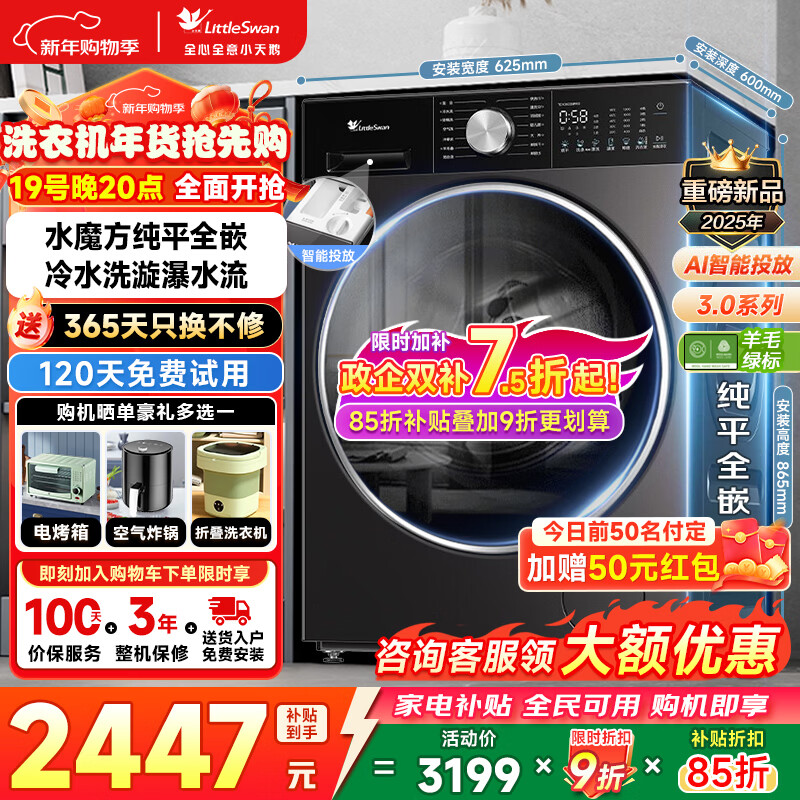 旗舰店小天鹅(LittleSwan)滚筒洗衣机【小乌梅3.0】超薄全嵌 家用全自动大容量水魔方 智能投放 家电补贴以旧换新 轻享版【10公斤无烘干SC08PRO】 单洗