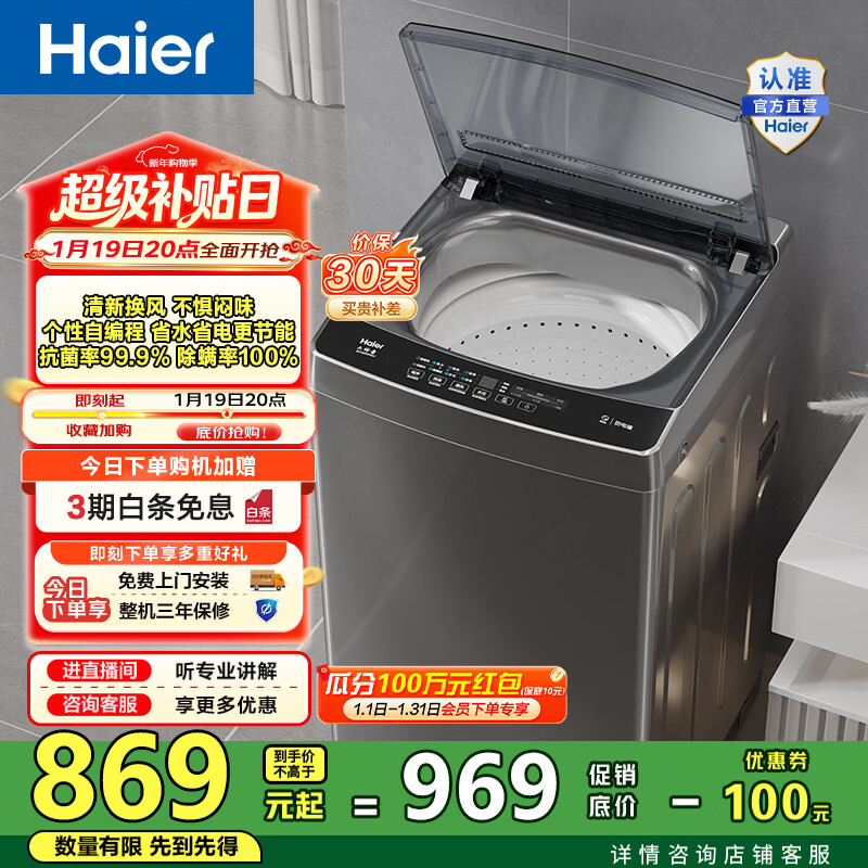百亿补贴海尔(Haier)波轮洗衣机全自动家用 12公斤大容量 升级除螨抗菌全桶换风 懒人强力洗 以旧换新Z33Mate1换新补贴