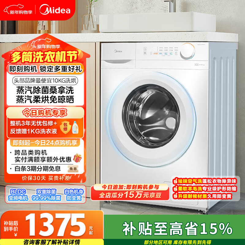 自营美的(Midea)滚筒洗衣机全自动 带烘干洗烘一体 10公斤家用超薄 双重除菌 MD100V11FPRO 以旧换新 国家补贴