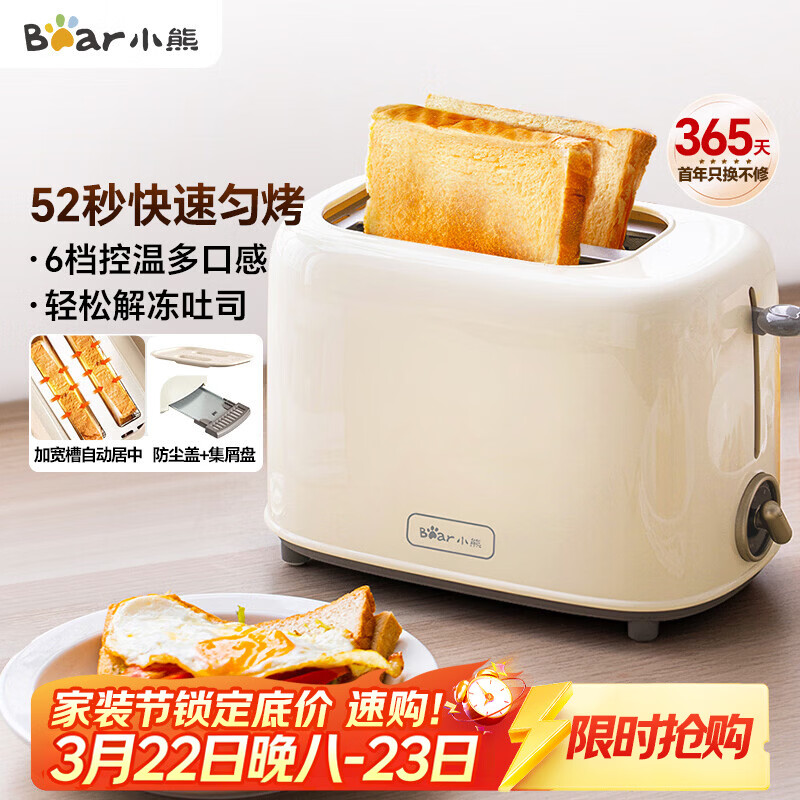 自营小熊(Bear)面包机早餐机 烤面包机吐司机多士炉家用烤面包片轻食机 双面6档匀烤DSL-C02K8