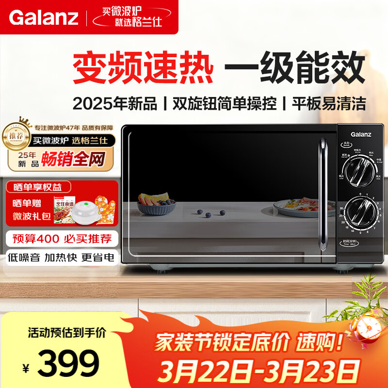自营格兰仕变频微波炉20L家用 平板均匀加热 双旋钮简单操作 小型易清洁 V-DG省电一级能效低噪音 2025年新品