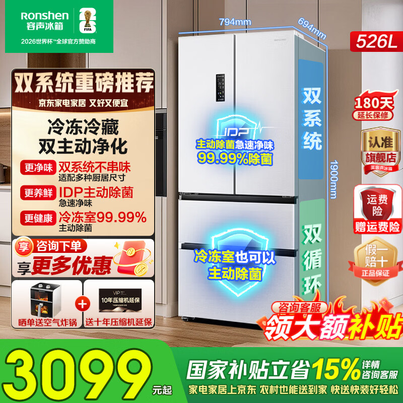 旗舰店容声526升双净双系统法式多门四开门电冰箱家用一级能效风冷无霜变频节能BCD-526WD1MPA白国家补贴15% 容声526升白色