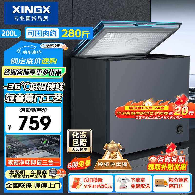 自营星星(XINGX)200L单温家用小型冰柜 大容量减霜保鲜净味节能一级能效冰箱冷藏冷冻两用冷柜BD/BC-200KE国家补贴