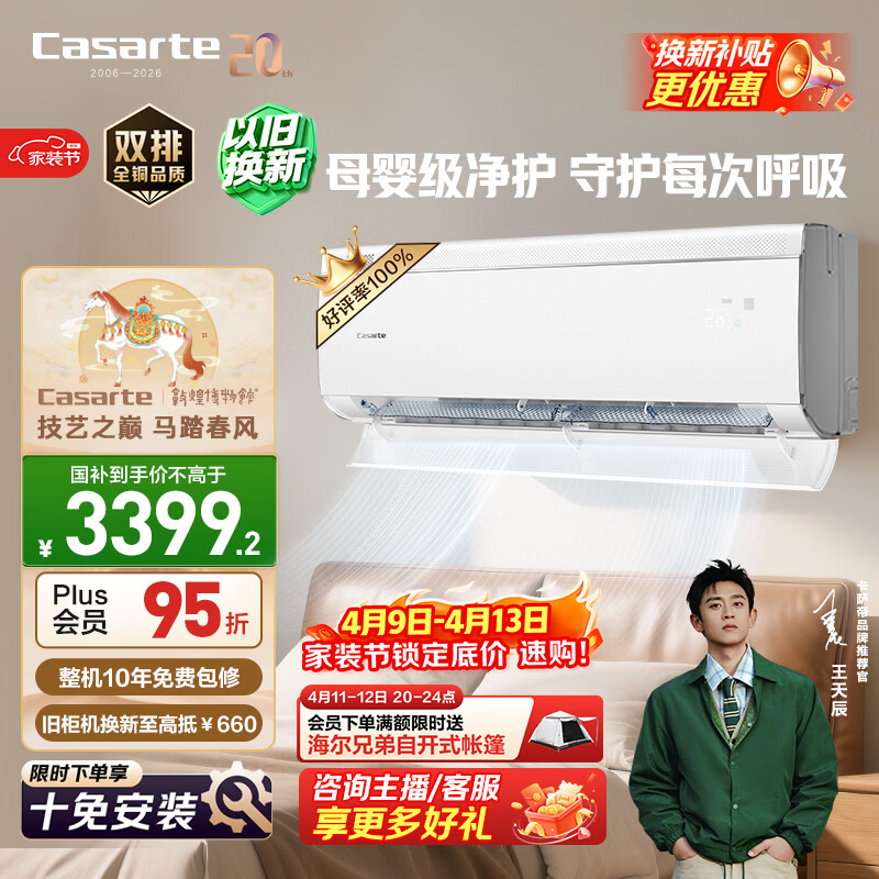 自营卡萨帝空调 揽光星悦版大1.5匹新一级能效变频 母婴级卧室挂机舒适风全铜管路国家补贴CAS3530FCC(81)U1