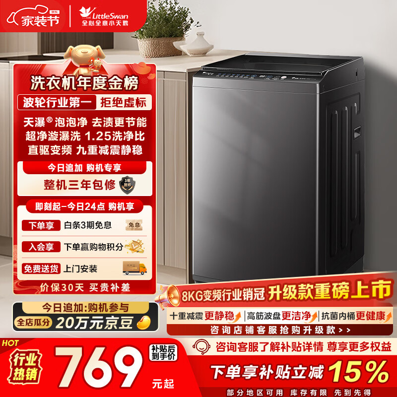 自营小天鹅(LittleSwan)波轮洗衣机小型全自动家用 8KG 直驱变频 TB80V26DT 以旧换新 国家补贴 京东自营 一级能效