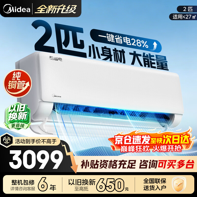 旗舰店美的空调挂机【2026款】酷省电新一级能效变频冷暖双排纯铜管壁挂式防直吹五代自清洁以旧换新家电补贴 酷省电 2匹 一级能效