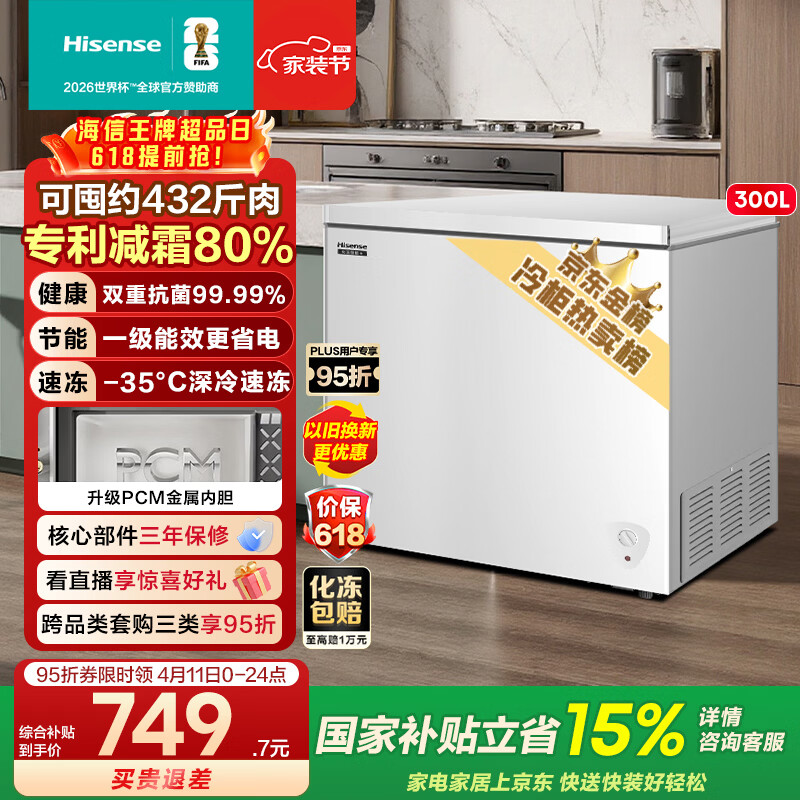 自营海信(Hisense)300升单温冰柜一级能效减霜深冷速冻冷藏冷冻冷柜BD/BC-300S1HNKQD国家补贴