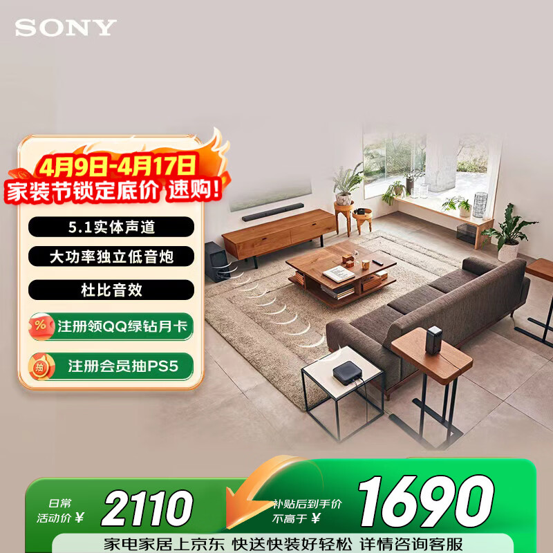 自营索尼(SONY)HT-S40R 5.1 实体环绕声道 杜比音效 无线后环绕 回音壁 Soundbar 家庭影院 电视音响 蓝牙