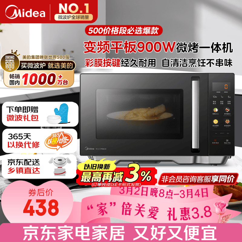 自营美的(Midea)微碳微波炉烤箱一体机900w微波1000w烧烤平板光波速热23L容量变频臻彩荧幕 (C32)