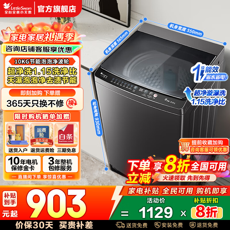 百亿补贴小天鹅(LittleSwan)一级能效波轮洗衣机全自动 10/12公斤可选直驱变频 送老人宿舍租房神器免清洗 以旧换新家电补贴 【10公斤特价定频款】泡泡净+超净洗1.15洗净比