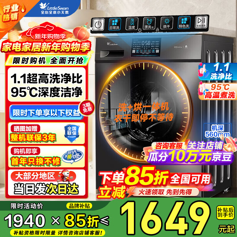 旗舰店小天鹅(LittleSwan)10公斤滚筒洗衣机全自动1大容量变频 1.1洗净比家用除螨除菌 以旧换新 1.1高洗净比+高温煮洗洗 23PRO 洗烘一体