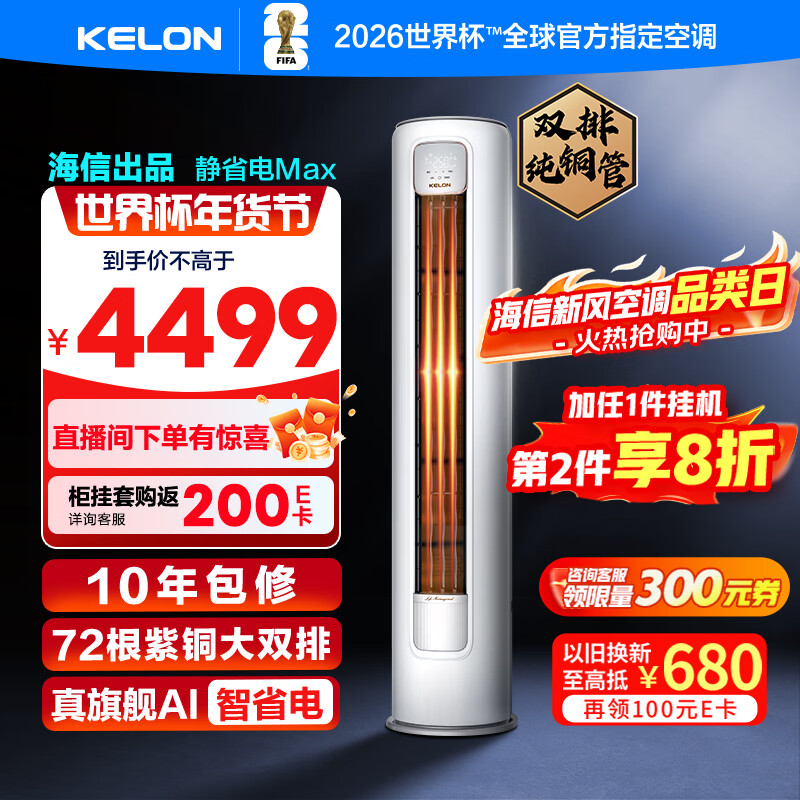 自营科龙空调3匹 海信出品 静省电Max 喵式生活新一级变频冷暖柜机立式客厅KFR-72LW/QS1Max-X1