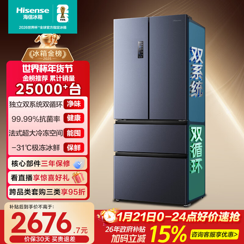 自营海信525L法式多门冰箱双系统大容量一级能效风冷灰色BCD-525WNK1PU国家补贴