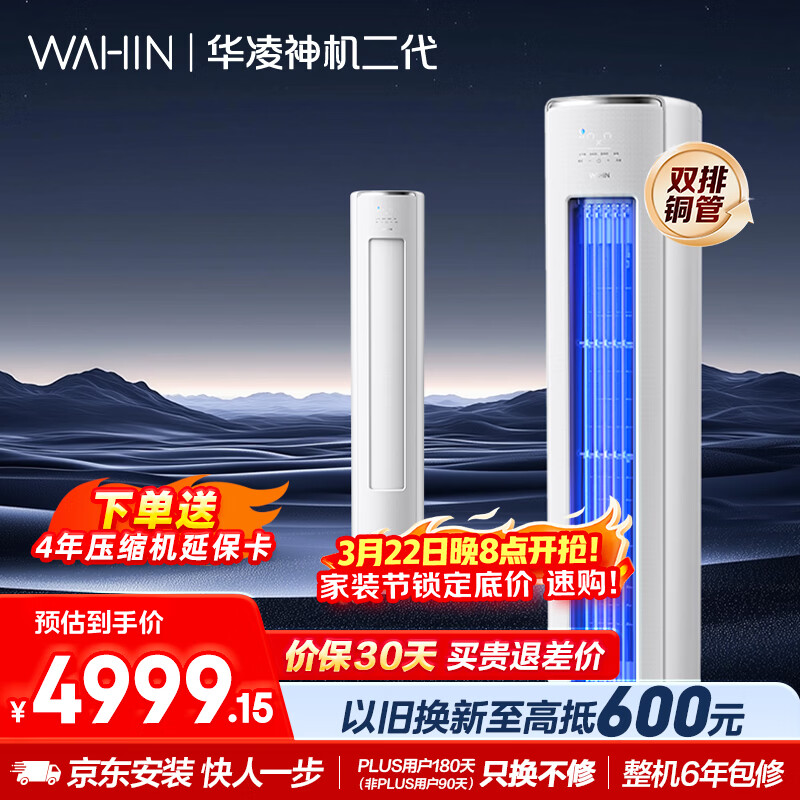 自营华凌空调 神机二代3匹一级能效 双排铜管节能省电 变频冷暖客厅立式柜机 国家补贴 KFR-72LW/N8HE1Ⅱ