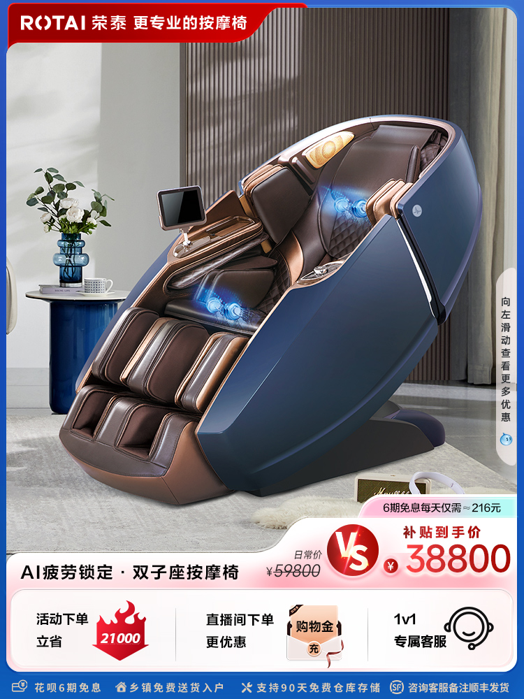 旗舰店荣泰RT8900AI按摩椅 家用 全身全自动豪华太空舱智能按摩沙发新款