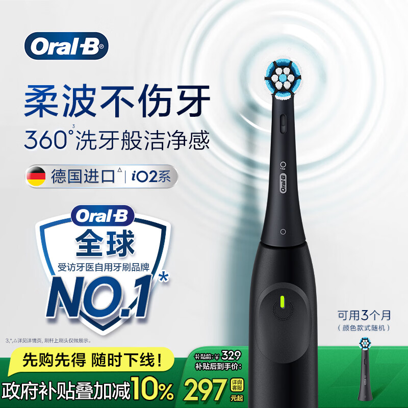 自营欧乐B德国进口智能电动牙刷iO2尊贵黑刷头*1柔波双净刷京东自营情侣送礼赠送男友送女友送长辈送父母