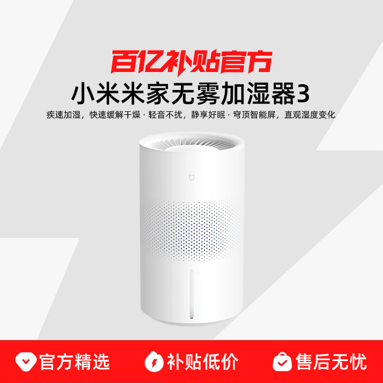 百亿补贴小米米家无雾加湿器3【400】家用卧室空调房静音抗菌大容量