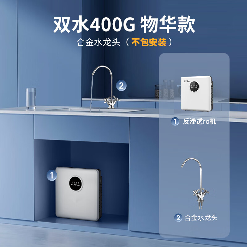 旗舰店远大健科ruruaRO反渗透净水器家用直饮多级净化10寸通用滤芯自来水过滤器75g大通量600g800g双水400g 【标准400G】双出水(自己安装)