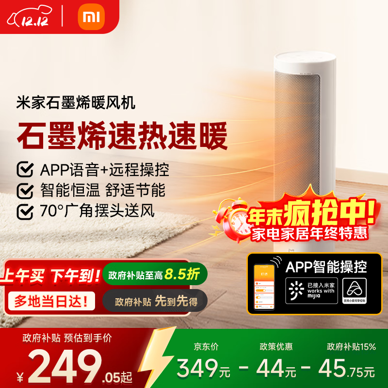 自营米家小米智能石墨烯取暖器暖风机小太阳电暖气7档调温智能恒温电暖器LSNFJ04ZM