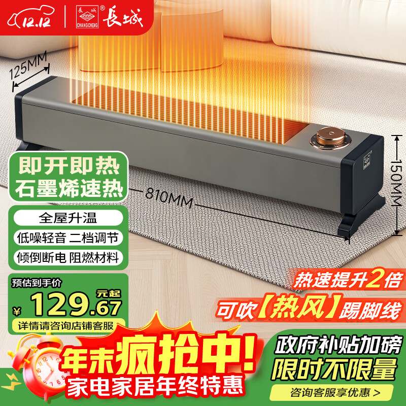 自营长城取暖器踢脚线家用暖风机电暖气大面积速热全屋升温神器移动地暖干衣暖风智能恒温(机械款)YJ2375