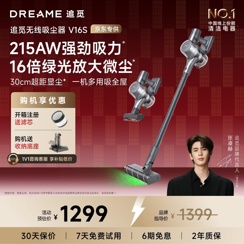 自营追觅【咨询有礼】吸尘器V16S 家用无线手持 215AW大吸力 90分钟续航 除螨宠物 国家补贴
