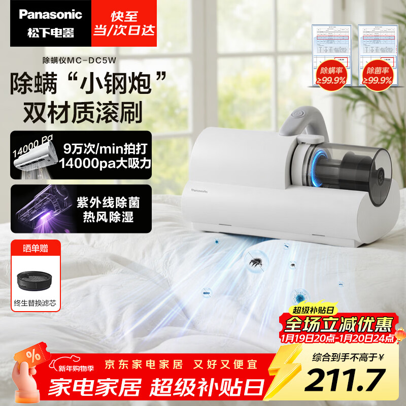 自营松下(Panasonic)【清洁神器】除螨仪床宝吸猫毛除螨虫一体机床上吸尘器大吸力紫外线杀菌热烘除湿团购礼品MC-DC5W