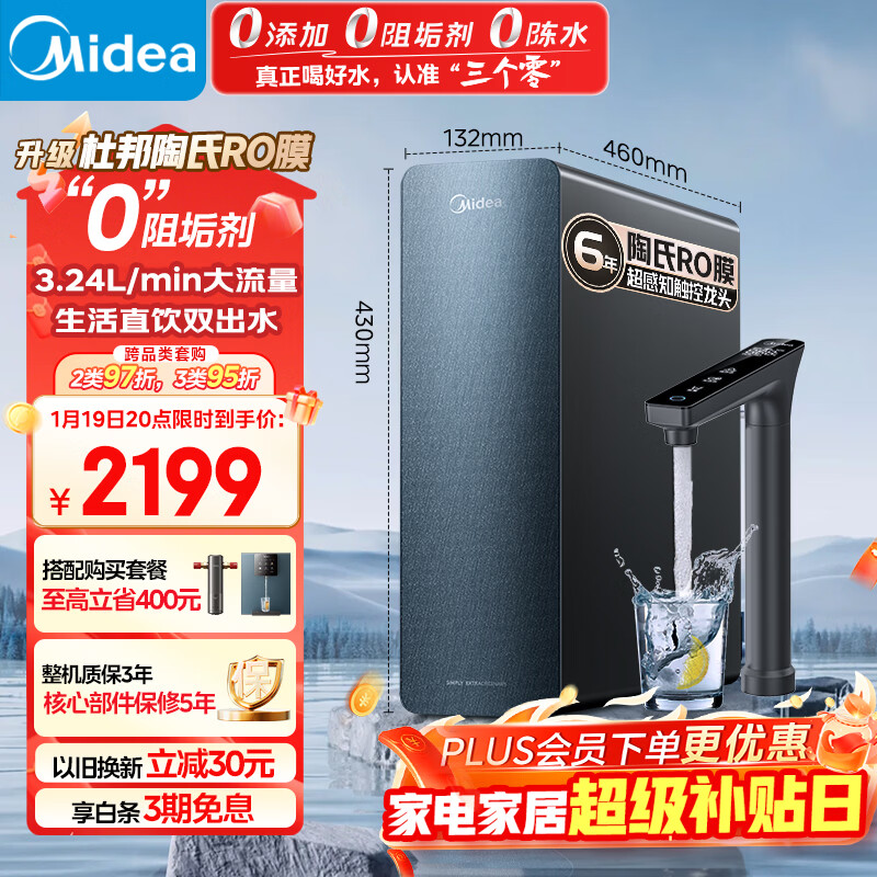 自营美的(Midea)家用净水机星河系列1200G PRO 6年长效陶氏RO 0阻垢剂反渗透直饮净水器厨下式净饮机 鲜活零陈水