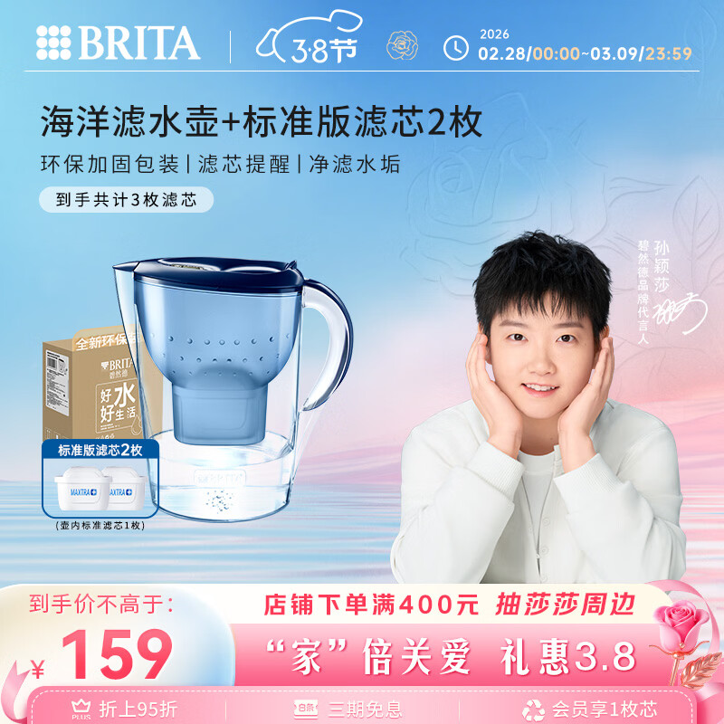自营碧然德(BRITA) 过滤净水器 家用滤水壶 净水壶 海洋系列 3.5L蓝色 一壶3芯装 环保加固包装